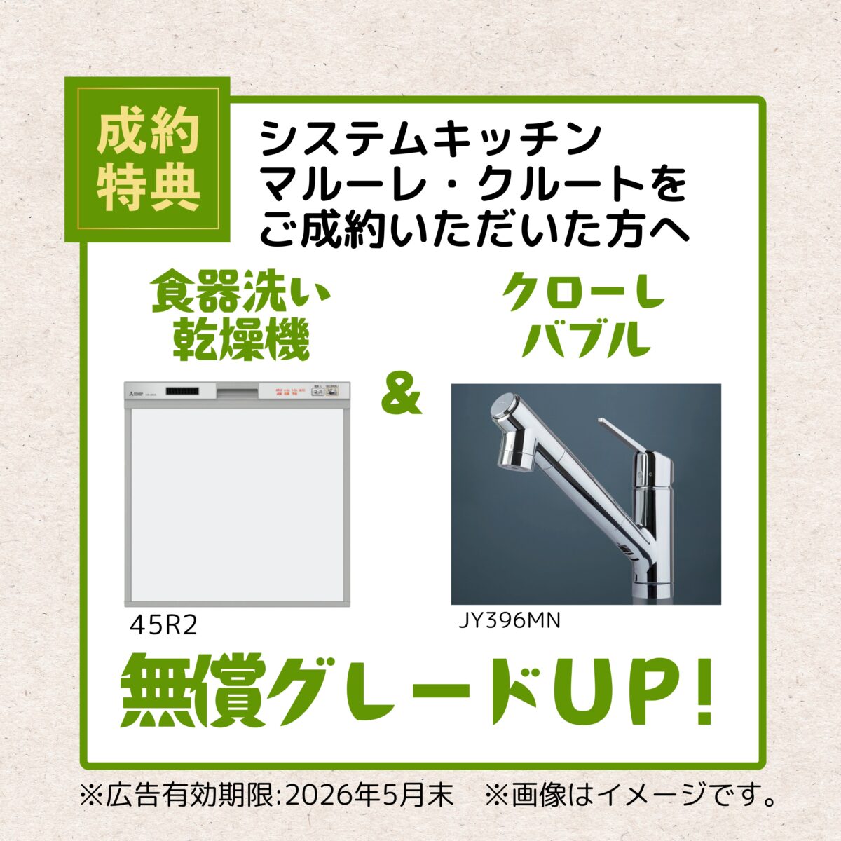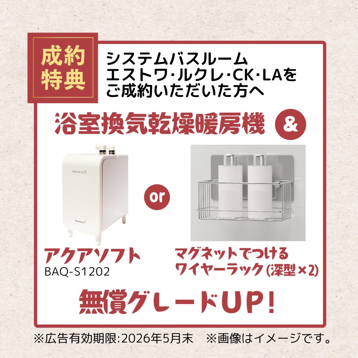 浴室、キッチンをご成約頂いた方へ
