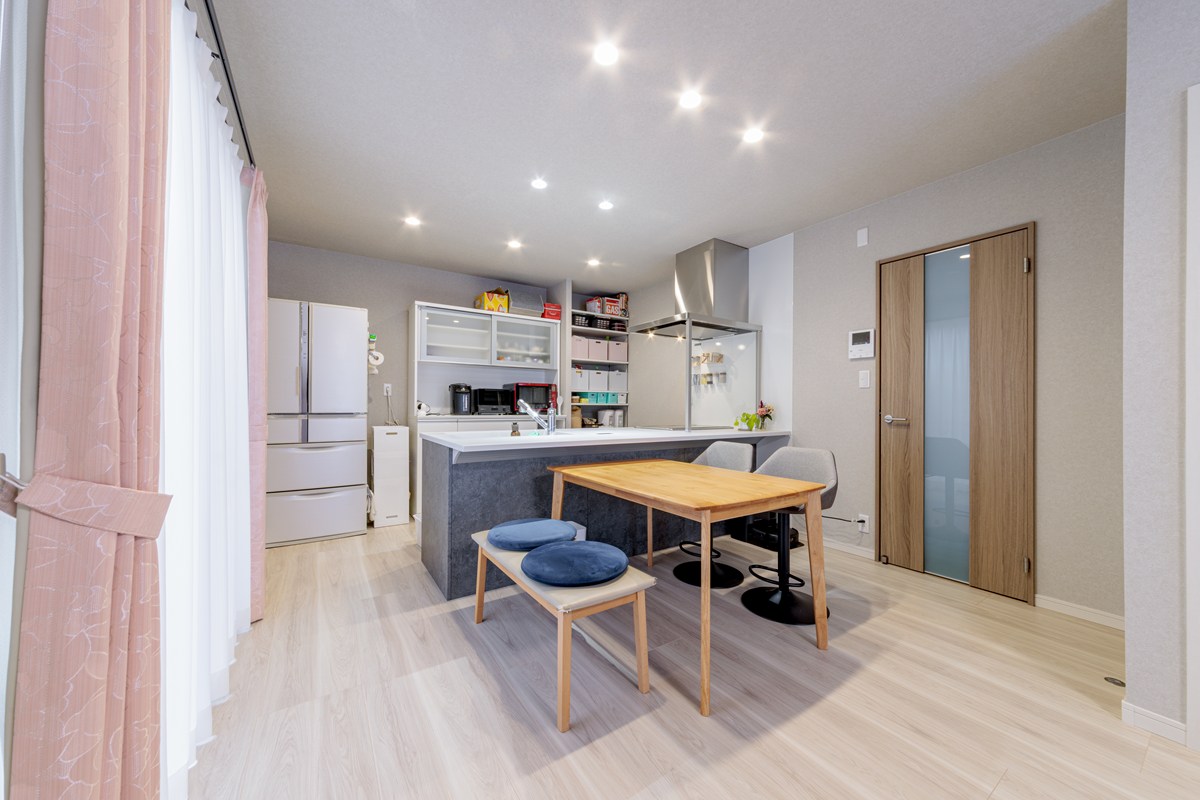 とても満足しています。最初に相談した他社では「対面キッチンにするのは難しい」と言われて諦めかけていましたが、思い切ってトータテリフォームセンターの庚午ショールームを訪問。対応してくれた藤明さんは、図面と家を見てすぐに「できますよ」と言ってくれました。キッチンを選ぶ時もコストとデザインの両面からアドバイスしてくれて心強かったです。また現場監督や大工さんたちもいい人ばかりでした。「換気扇ダクトを通す箇所は天井を下げることになるかもしれない」「ダイニング・キッチンと和室の間の袖壁は残るかもしれない」と言われましたが、どちらも工事中に「無しで対応できそうです」と声を掛けてくれました。皆さんの仕事ぶりを見られて、工事中も楽しい思い出になりました。