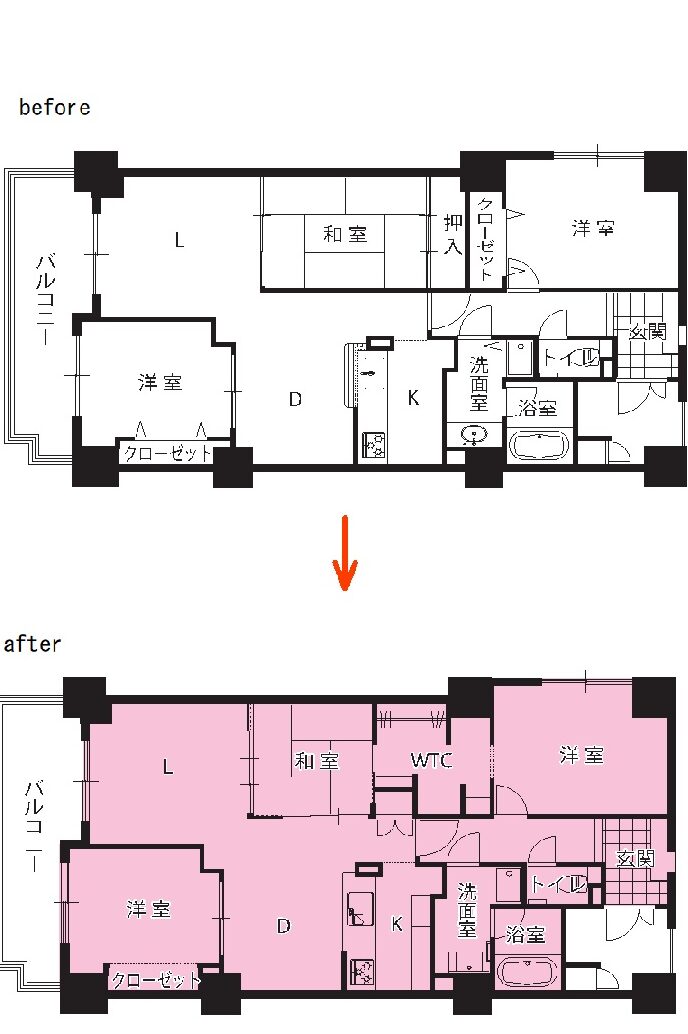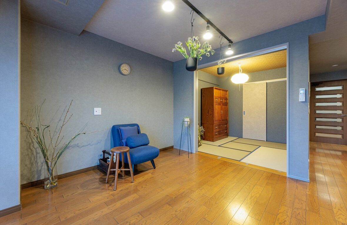 間取り変更を希望したのは、和室と洋室の間にウォークスルークローゼットを設けることです。娘の家族が帰省した時のために和室はサイズダウンして残し、建具で開閉できるようにしました。ウォークスルークローゼットの中も、置きたい物に合わせたレイアウトや棚板の色まで、要望に応えてもらえてとても満足しています。